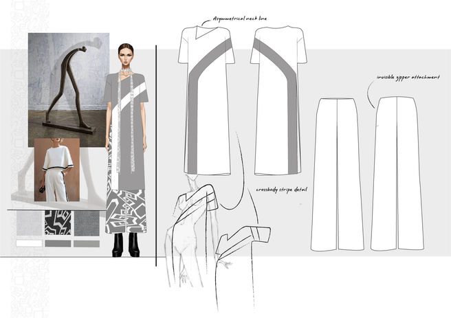 This collection explores the tension between structure and rebellion, inspired by the expressive forms of abstract sculptures. Traditional garment construction is disrupted through asymmetrical lines, layering, simplified sculptural silhouettes, and geometric panelling. The use of lightweight denims introduces a sense of structure and modern utility, while delicate lace adds contrast through softness and femininity. Like abstract sculptures that challenge conventional balance, the designs embrace controlled irregularity while maintaining elegance. The result is a modern, feminine identity that is both powerful and artistic—where beauty emerges from defying expectations.